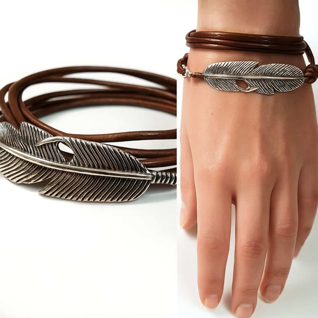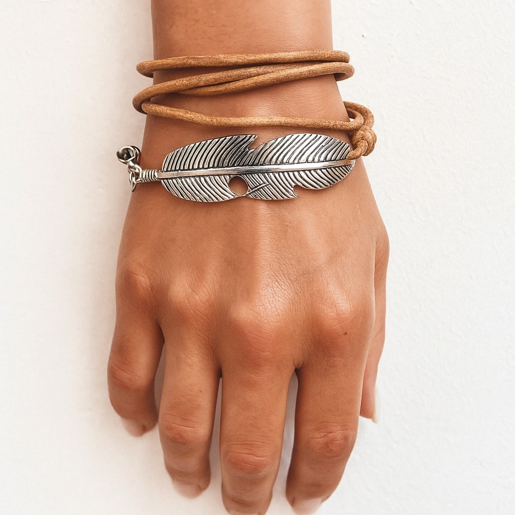 Bracelet multi-tours artisanal : entre cuir naturel et symbolique de la plume