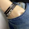 Bracelet pour papa personnalisé cuir noir 3 rangs
