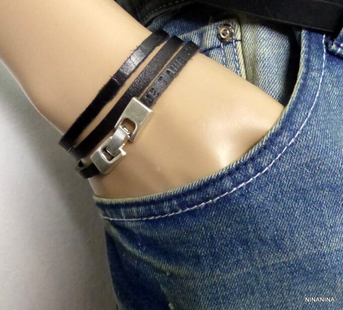 Bracelet homme cuir wrap personnalisé initiales