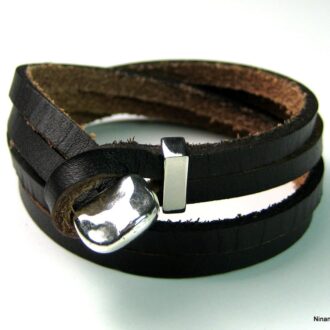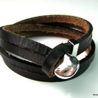 Bracelet cuir 3 tours et métal argenté