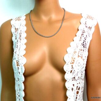 Chaine acier inoxydable maille torsadée. Diamètre : 0,4 cm. Fermoir mousqueton. Longueur totale (fermoir compris): 55 cm. Livré dans sa pochette d’organza. Bijou 100% fait-main.