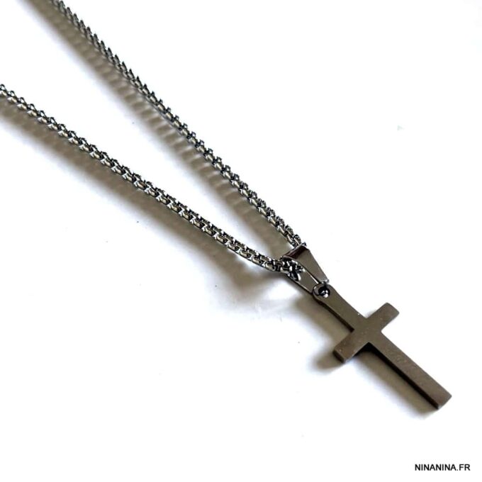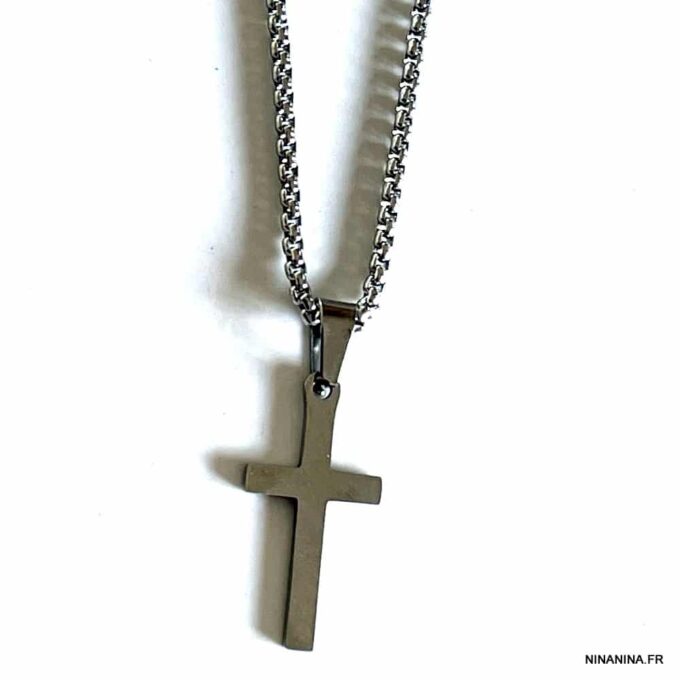 Elégante, imposante de quoi afficher sa foi tout en virilité, cette Chaine avec croix homme maille Acier inoxydable argent composé d’un pendentif croix en acier inoxydable argent, aussi appelé acier chirurgical monté sur une Chaîne en Acier maille vénitienne sobre et élégante.