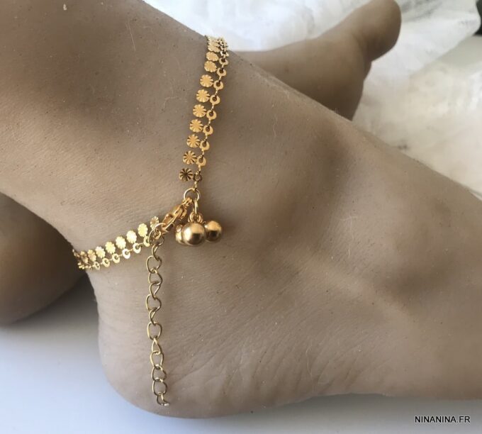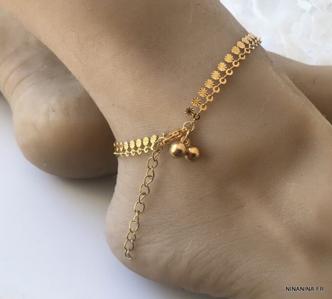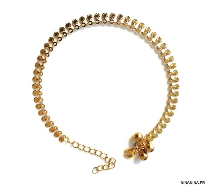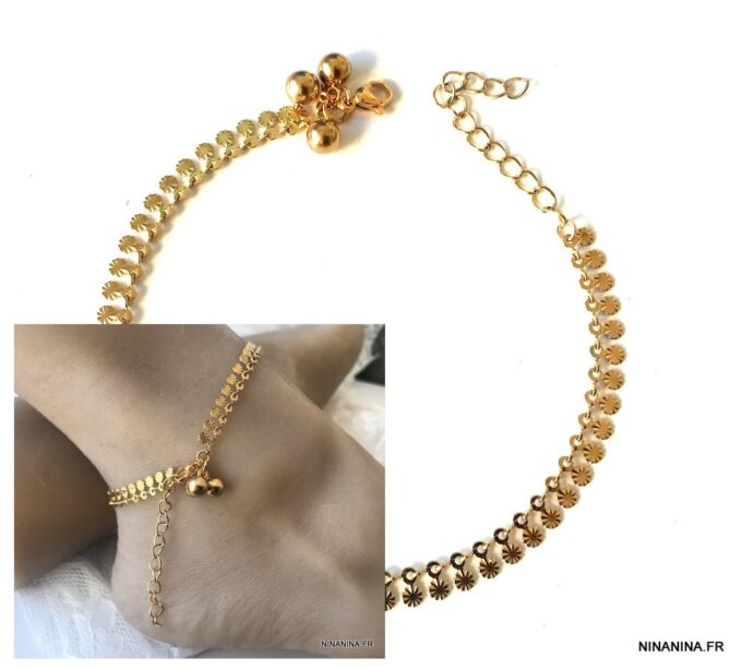 Subtile mélange d’élégance et de finesse à la sauce orientale, cette Chaine cheville doré indienne acier inoxydable or ne vous quittera plus, été comme hiver! Sensuelle et raffinée, de quoi exprimer toute votre féminité, et jusqu’au bout des pieds!