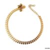 Ce Bracelet cheville femme plaque or est en plaqué or 9 carats sur une base en acier inoxydable. Le plaqué or est un très gros avantage pour l’achat d’un bijou. En effet, le plaqué or est peu cher, car le bijou ne possède qu’une très fine couche d’or. Peu gourmand donc en or, il donne au bijou un tarif très accessible par tous.