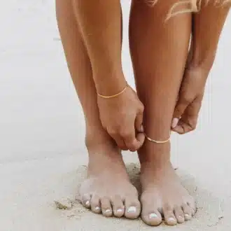 En superposition : mixée avec d’autres bracelets de chevilles pour un effet tendance ou avec nos bagues de pied