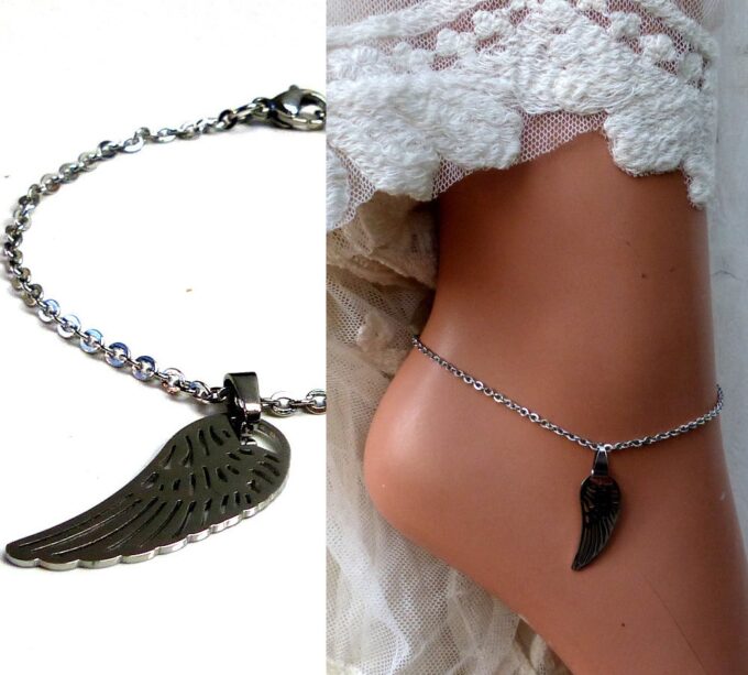 Habillez joliment votre pied avec cette jolie Bracelet cheville femme acier inoxydable aile d’ange composée d’un pendentif aile d’ange en acier inoxydable monté sur chainette en acier inoxydable argenté.