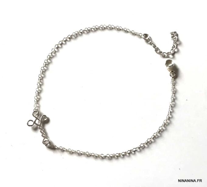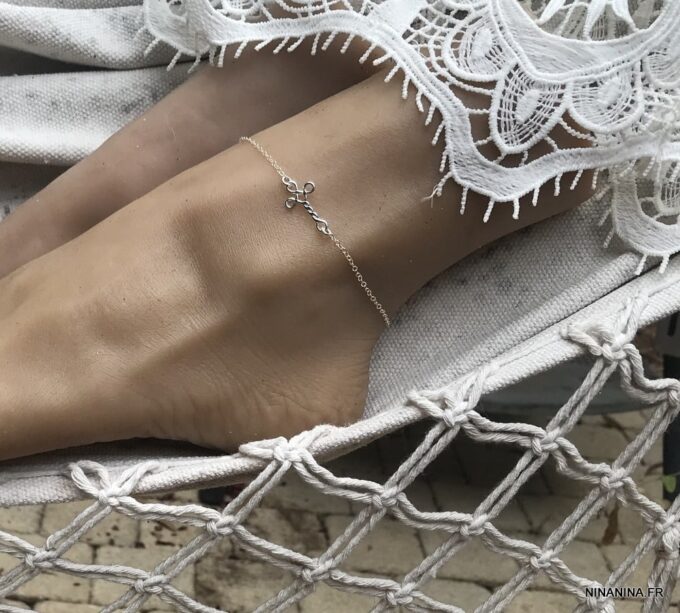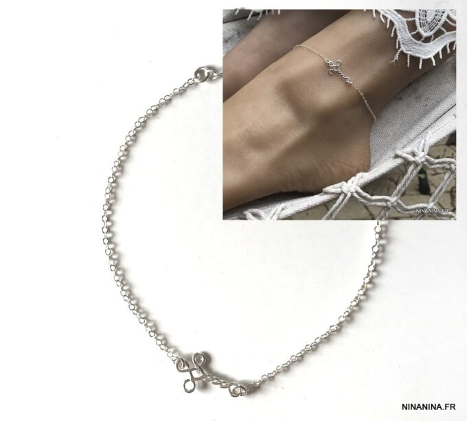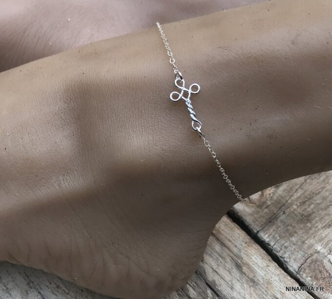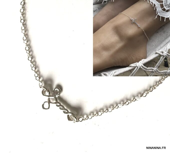 Chaine Cheville Croix horizontale Argent 925 femme composée d’une petite croix en argent 925 montée à l’horizontale sur chainette en argent 925 maille forçat.