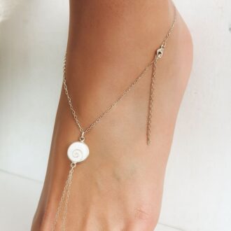 Délicatesse, finesse et volupté habilleront votre cheville avec ce Bijou oeil de Sainte Lucie – Chaine de cheville coquillage composé d’un coquillage oeil de Sainte Lucie monté une chaînette en argent 925 maille forçat.