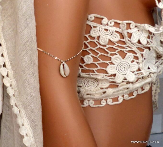 Astuce Ninanina : Portez cette chaine de cheville coquillage en bracelet de bras pour un look ethnique boheme chic ! Un bijou de pied 2 en 1 !