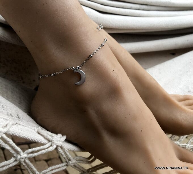 Une Chaine de cheville tendance qui habillera les chevilles les plus fines comme les plus fortes. Un délicat pendentif croissant de lune en acier chirurgical monté sur une fine chaine maille satellite en acier argent, cette Chaine de cheville Acier possède tous les attributs qui souligneront la sensualité de vos pieds! Cette Chaîne de cheville, aussi appelée chevillère ou chaine de pied, est terminée par un délicat fermoir mousqueton, facile d’utilisation.