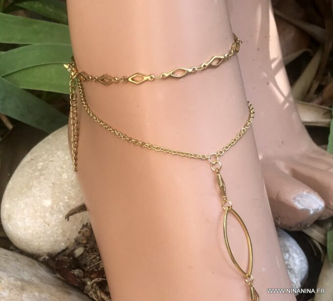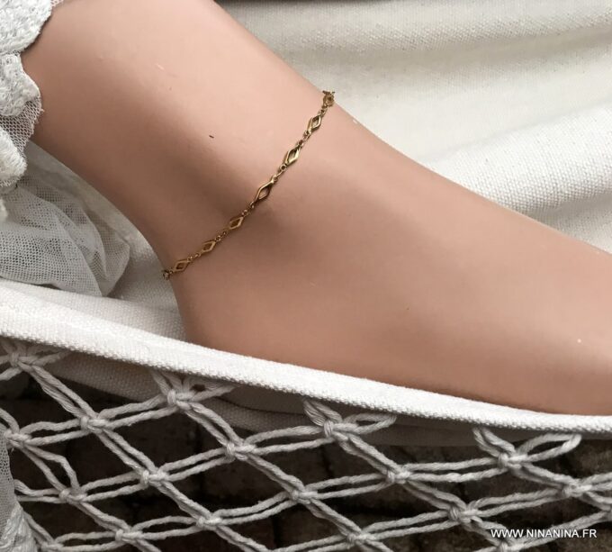 Raffinée et délicate, cette Chaine de cheville doré Acier inoxydable plaqué or couvre la cheville de la manière la plus originale qu’il soit ! Une belle couleur or, des losanges finement ciselés, il ne lui en faut pas plus à ce bracelet de cheville doré pour nous enchanter !