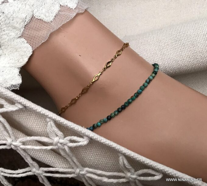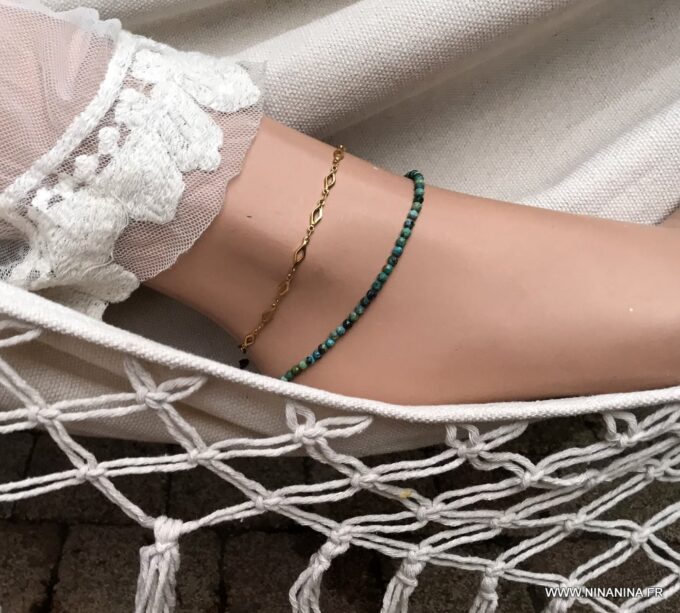 Vous souhaitez modifier ou ajouter une pièce? modifier la couleur ou la matière ? Cette chaine de cheville dorée est faite sur mesure et comme la majorité des bijoux Ninanina, est personnalisable. En plus de choisir la matière de la chaine en acier doré ou argenté si vous préférez les bijoux argentés, vous pouvez demander à modifier d’autres caractéristiques de ce bijou. La longueur proposée est de 25 cm mais il est possible d’opter pour une toute autre longueur si vous avez des chevilles plus fines ou plus fortes que la norme. Il vous suffit de laisser un commentaire et nous élaborerons ensemble votre nouveau bijou personnalisé.