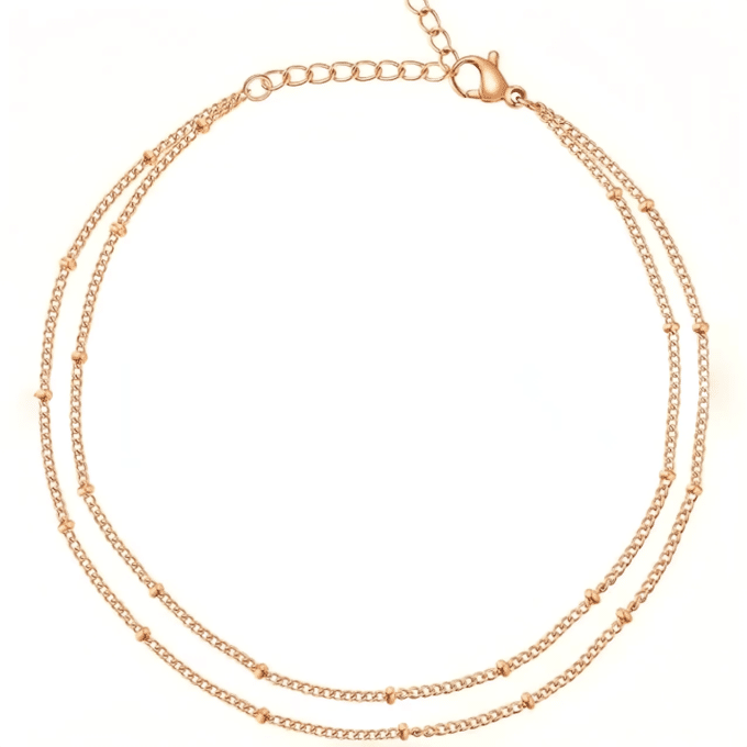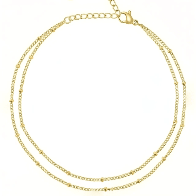 Cette chaine de cheville dorée double rang pour femme est parfaite pour compléter vos tenues estivales, vos robes légères ou vos looks de plage. Apportez une touche de glamour à vos chevilles et laissez-vous séduire par son charme élégant.