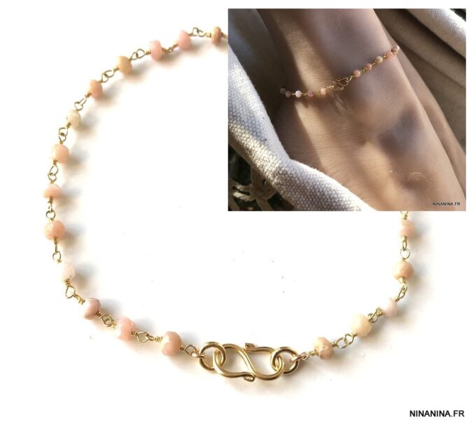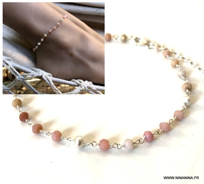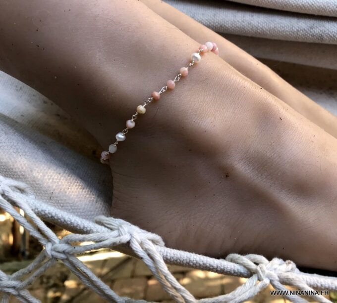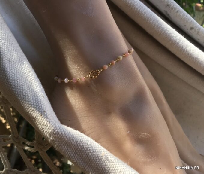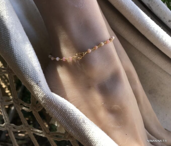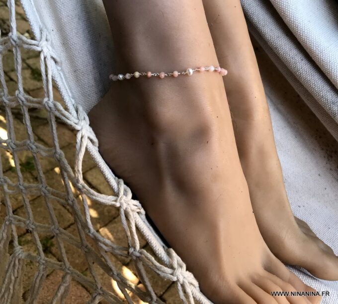 Profitez de l’été avec ce beau Bijou de pied que vous pourrez porter sur la plage ou sous un vêtement et qui ne vous quittera plus, été comme hiver et bénéficiez des vertus de ses pierres en Opale rose. En linothérapie, l’Opale guérit les émotions, surtout celles liées à une douleur inconsciemment conservée. Cette pierre stimule la réflexion et apaise la colère. L’Opale est la pierre de naissance des natifs du mois d’octobre. Les noces d’Opale célèbrent le vingt-et-unième anniversaire de Mariage.