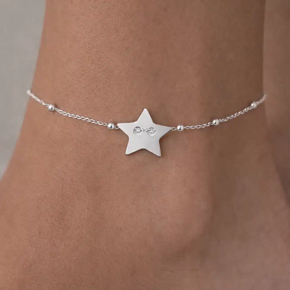 Réalisée en argent 925 massif, cette chaîne de cheville offre une brillance naturelle et une excellente durabilité. L’argent véritable est reconnu pour sa résistance et son confort au porté, idéal pour un bijou destiné à être porté régulièrement, notamment en période estivale. La finition soignée met en valeur la finesse du motif étoile, symbole de lumière, de rêve et de liberté.