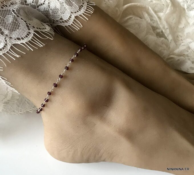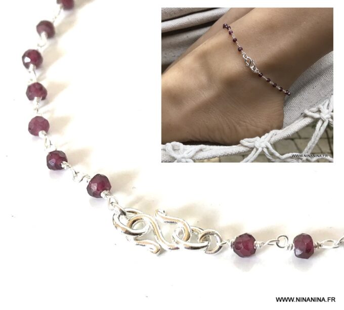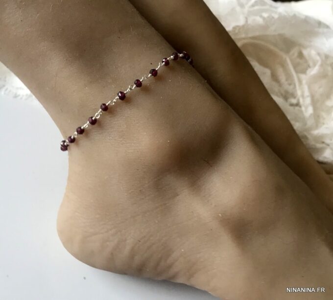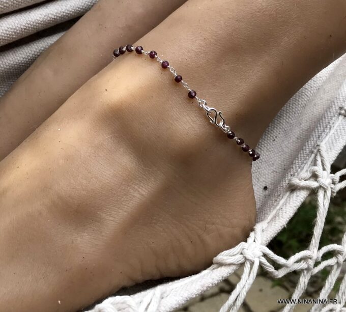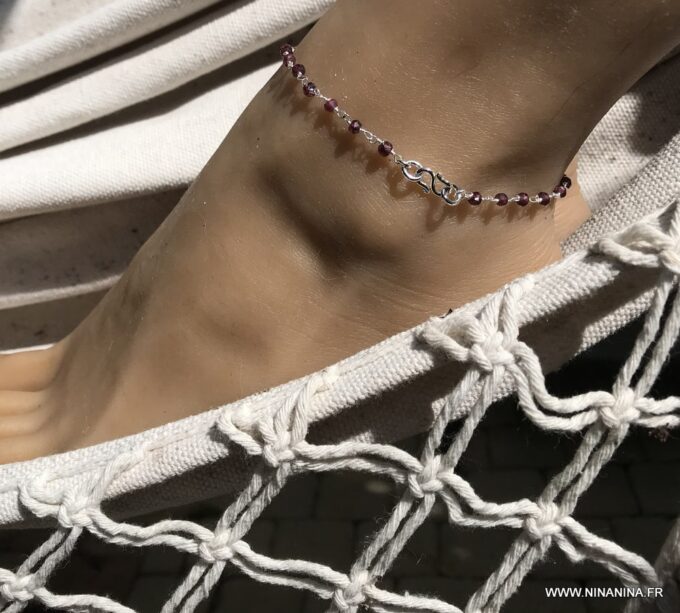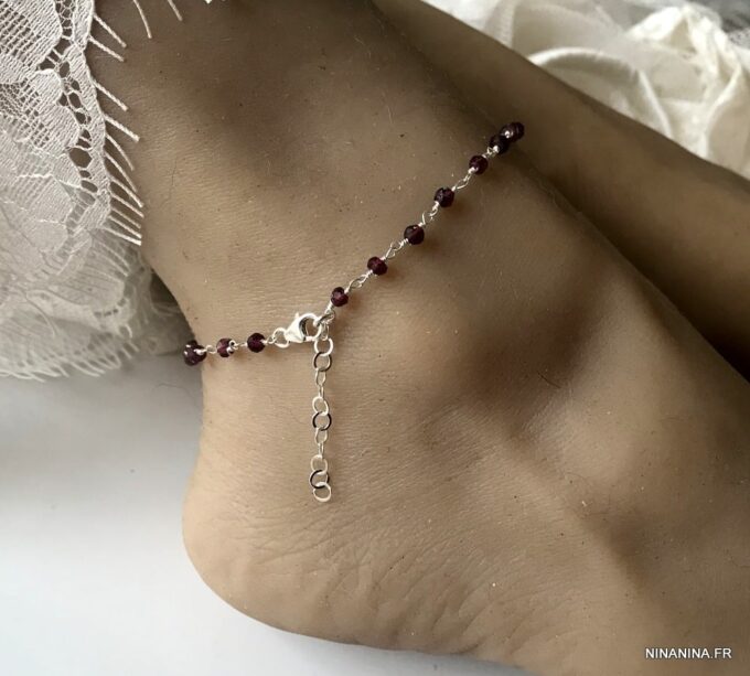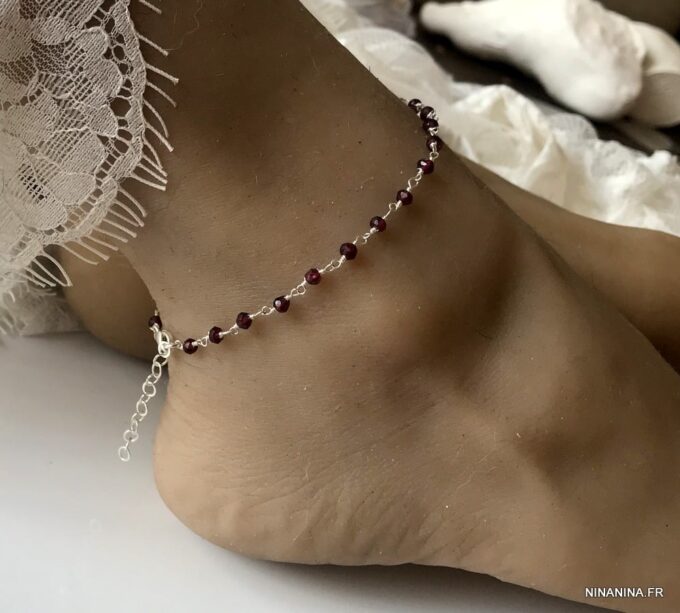 Porte bonheur, talisman, amulette de protection, cette Chaine de cheville argent et grenat, bijou pierre de naissance original et somptueux fera un cadeau qui plaira à coup sûr !