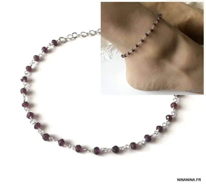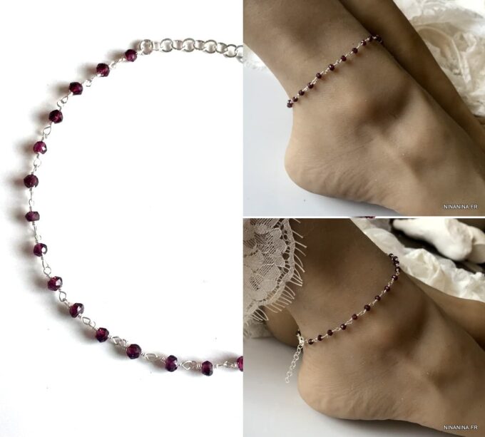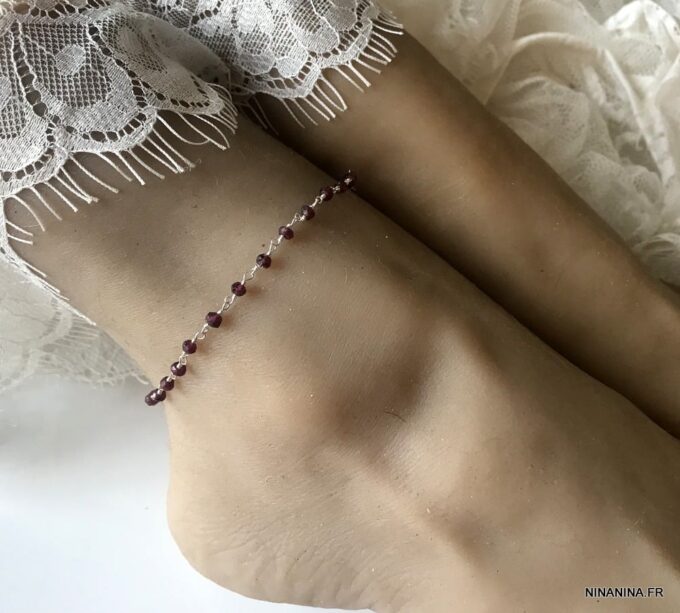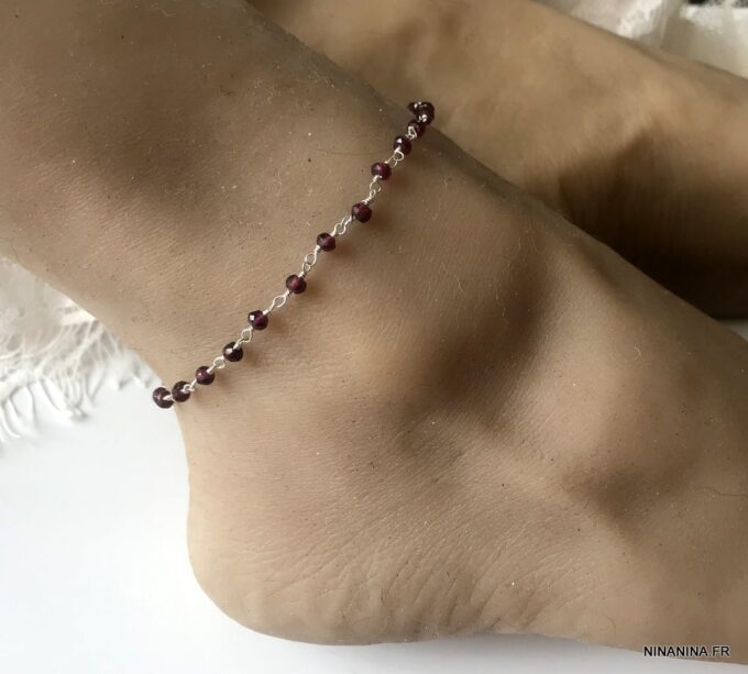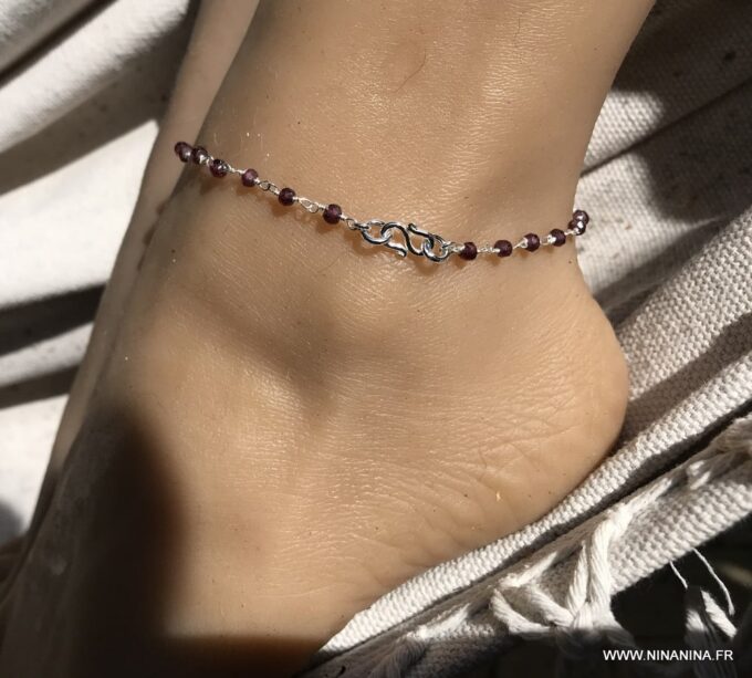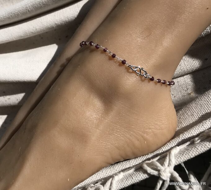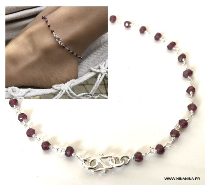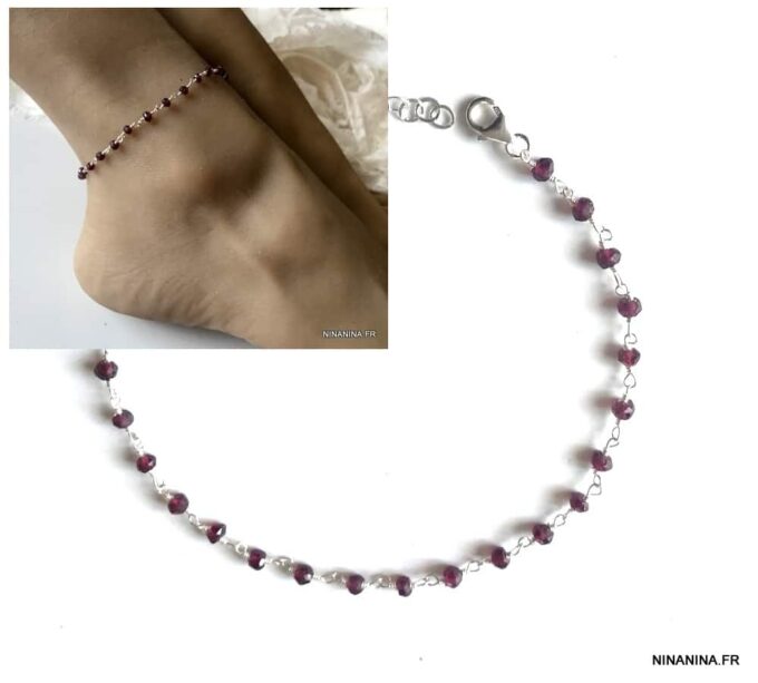 Porte bonheur, talisman, amulette de protection, cette Chaine de cheville argent et grenat, bijou pierre de naissance original et somptueux fera un cadeau qui plaira à coup sûr !