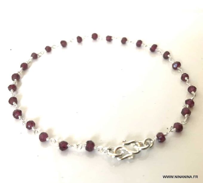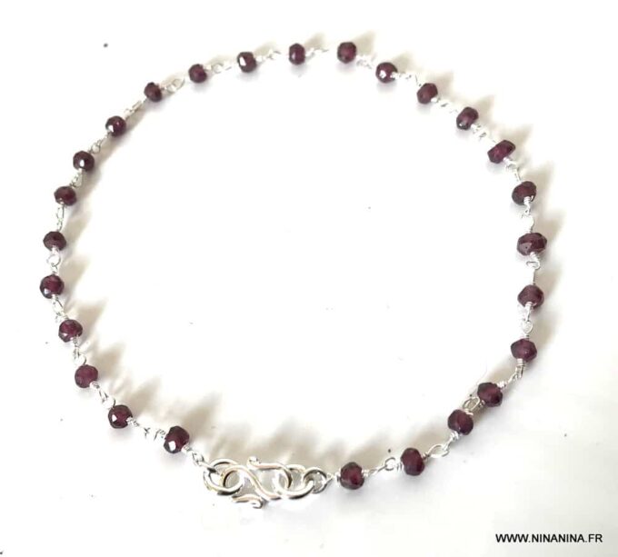 Ce bijou grenat rouge de grande qualité est unique et fabriqué à la main, de façon artisanale dans notre atelier du sud de la France. La longueur (fermoir infini compris) est de 24 cm environ. Dim des pierres : 4 mm. Poids : 3 g.