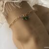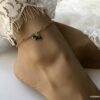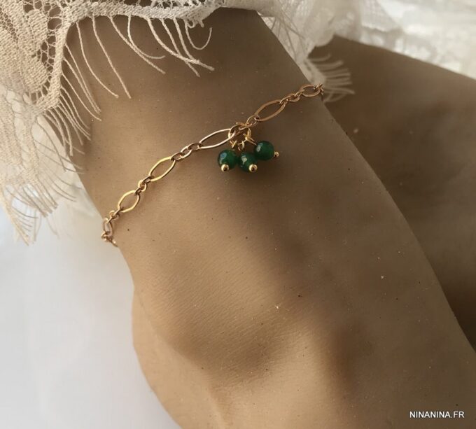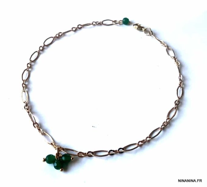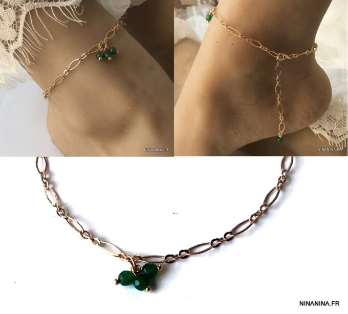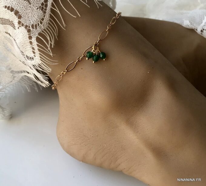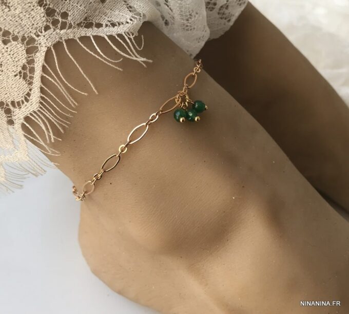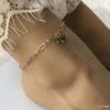 Craquez pour cette splendide Chaîne de cheville grosse maille fantaisie laiton doré et ses petites perles vertes !