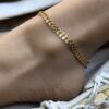 Ce Bracelet cheville femme plaque or est en plaqué or 9 carats sur une base en acier inoxydable. Le plaqué or est un très gros avantage pour l’achat d’un bijou. En effet, le plaqué or est peu cher, car le bijou ne possède qu’une très fine couche d’or. Peu gourmand donc en or, il donne au bijou un tarif très accessible par tous.