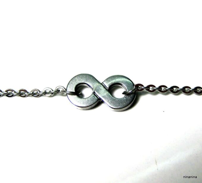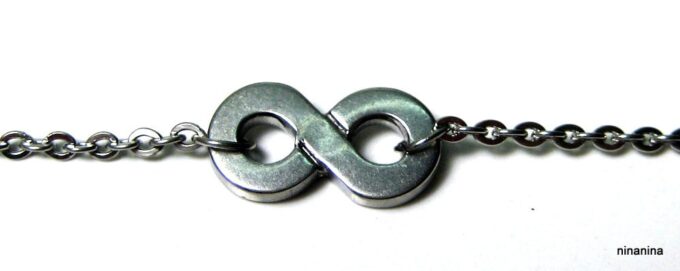 Splendide, délicate et raffinée, cette jolie Chaine de cheville acier inoxydable symbole infini délivre toute sa finesse.  Composée d’un symbole infini en acier chirurgical monté sur une chaine en  maille forçat, elle vous fera tout simplement craquer!