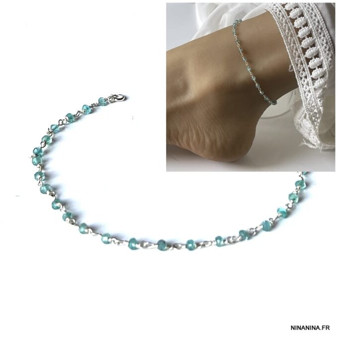 Une chaine de cheville pierres bleues personnalisable et modifiable à souhait!