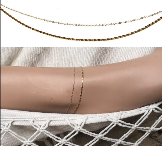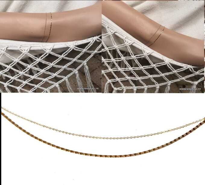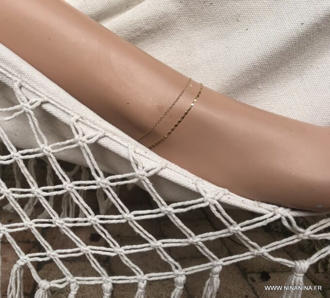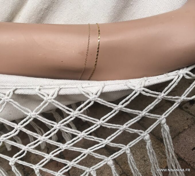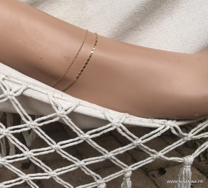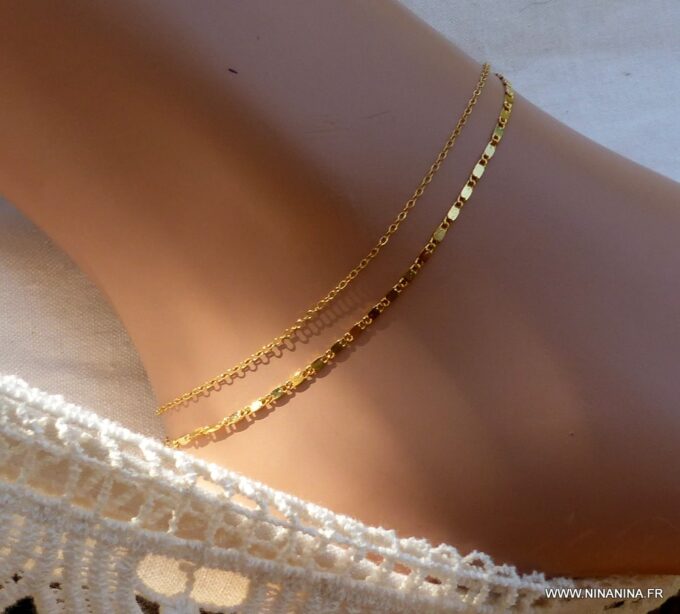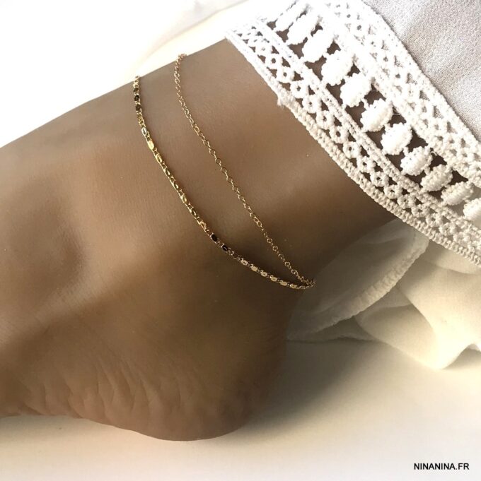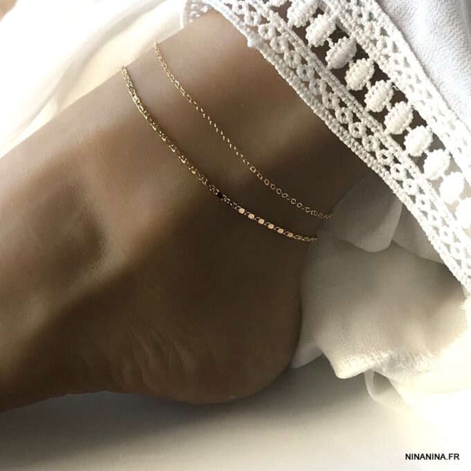 N’hésitez plus cette chaine de cheville plaqué or double rang est bien le bijou de pied qu’il vous faut ! Un bijou fin et original que nous vous proposons à petit prix!