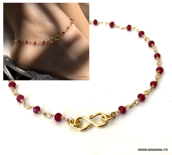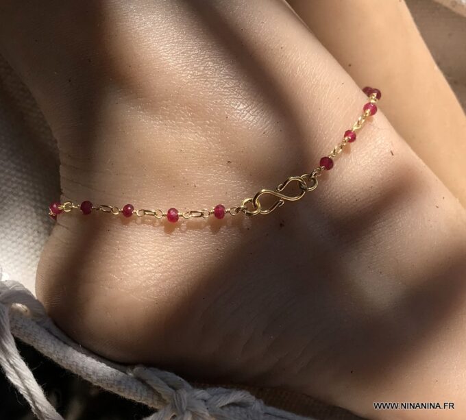 Comment porter la chaine de cheville pierres précieuses rouges?