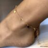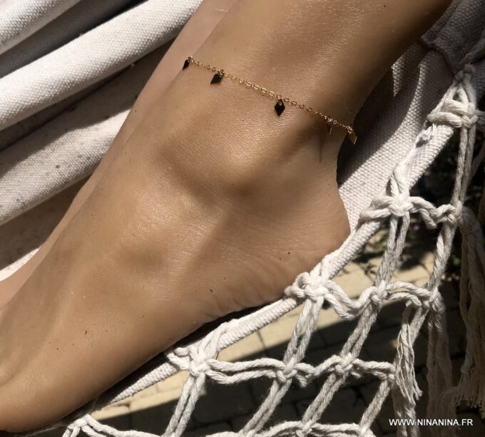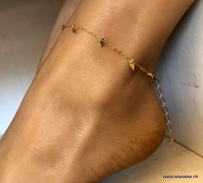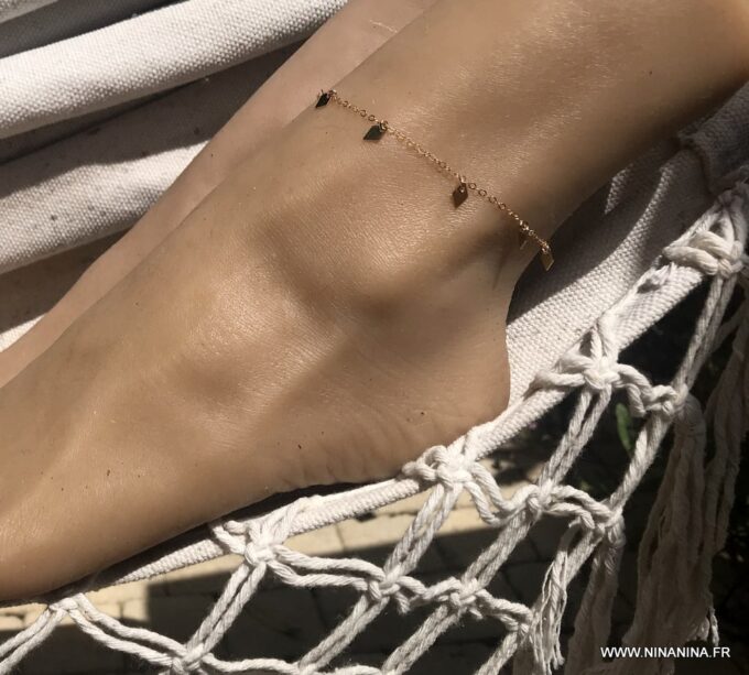 Cette Chaîne cheville or plaqué, aussi appelée bracelet de cheville ou chaine de pied, est terminée par un délicat fermoir rond à ressort facile d’utilisation. Tout simplement exquise!