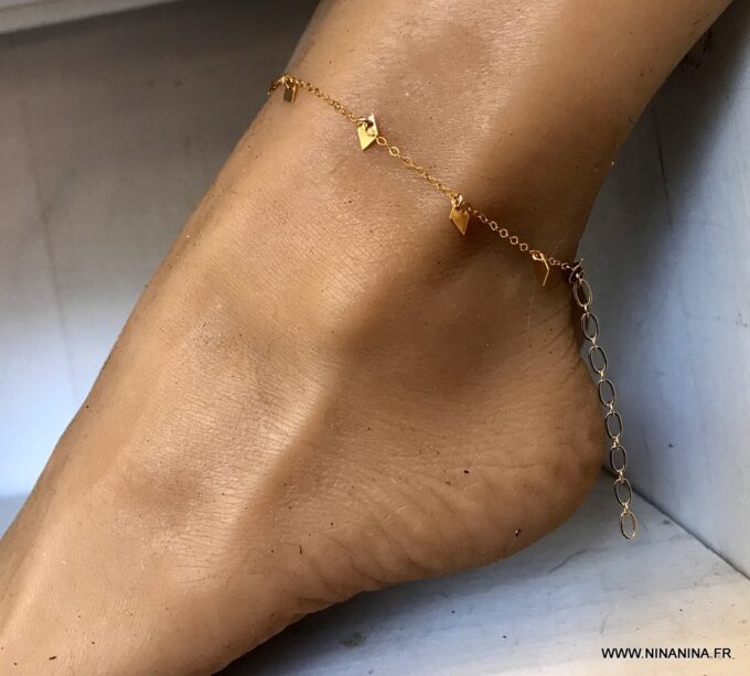 Ce joli Bijou de pied en Plaqué Or Gold filled de grande qualité est unique et fabriqué à la main, en série limitée, de façon artisanale dans notre atelier en France. Il est terminé par un fermoir rond à ressort. Il s’agit d’une pièce faite sur mesure qui convient pour la majorité des chevilles, la longueur est de 25 cm. Merci de laisser un commentaire si vous souhaitez une autre longueur.