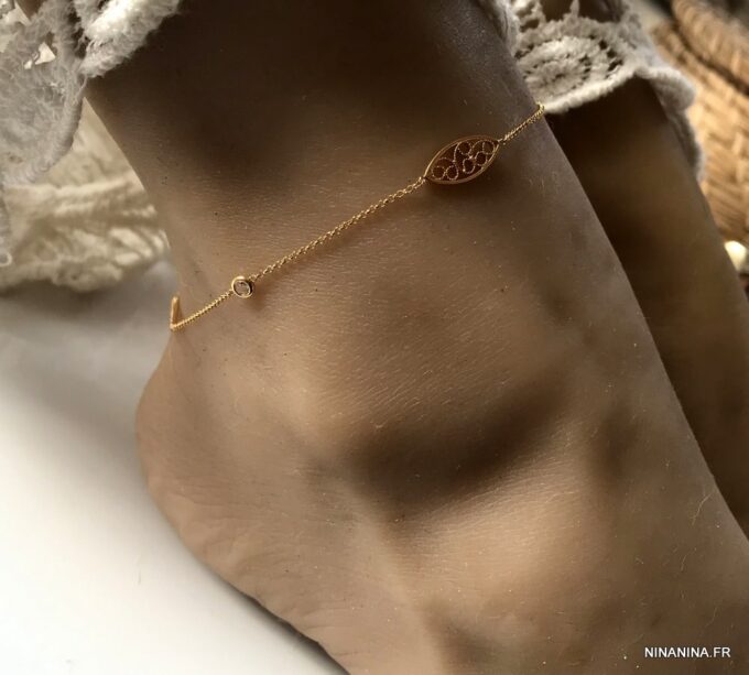 Chaîne de cheville plaqué or pas cher zirconium