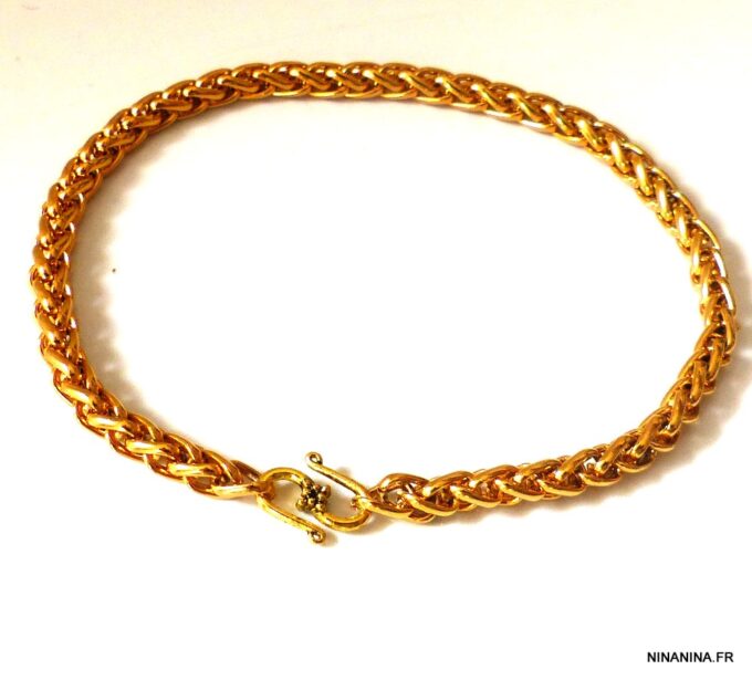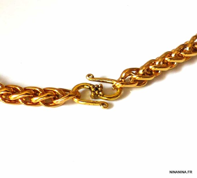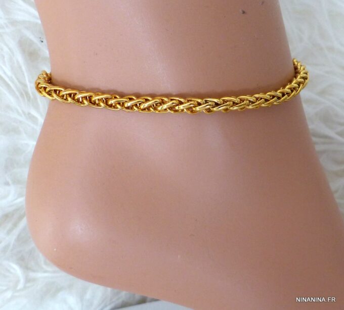 Chaine de cheville métal doré torsadée composé d’une chaine torsadée en métal doré. Diamètre : 3 mm.