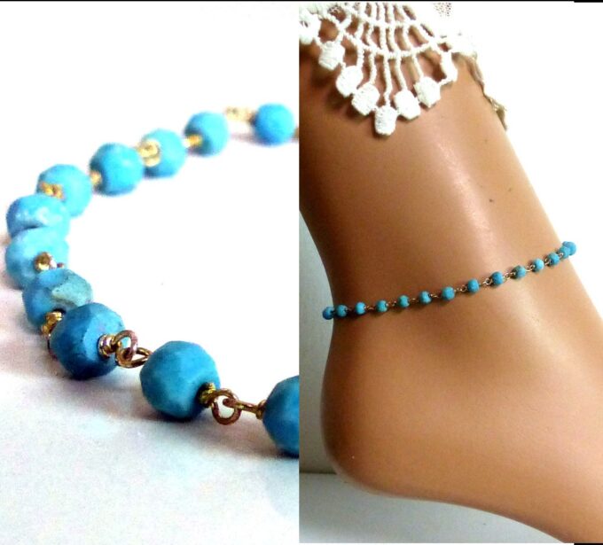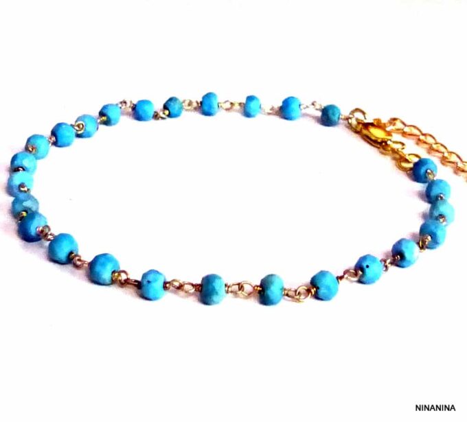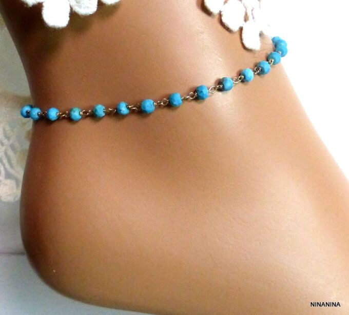 Chaine cheville turquoise facettée Plaqué Or composée de turquoises facettées naturelles et plaqué or montées sur une chainette de rallongement en plaqué or.