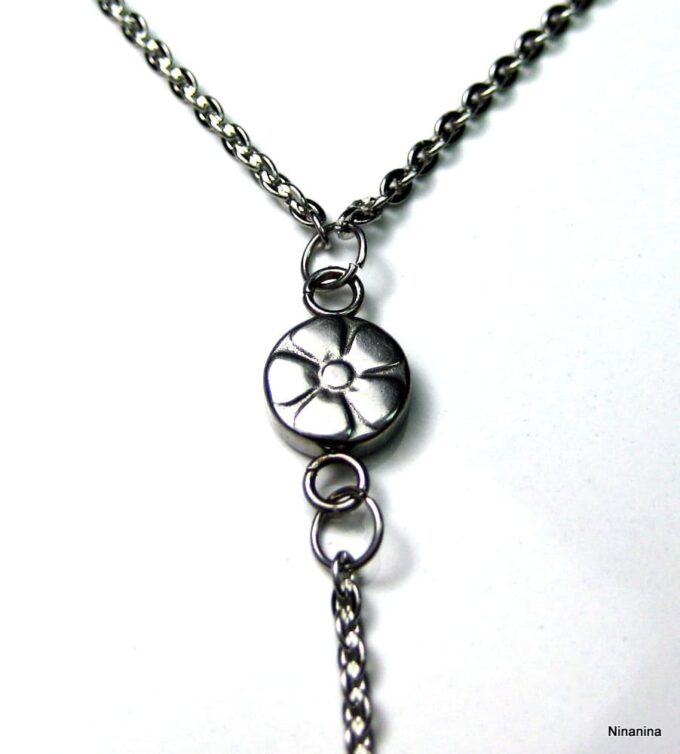 Collier Chaine de corps femme Acier inoxydable argent composée d’une entretoise ronde montée sur une chainette en acier inoxydable.