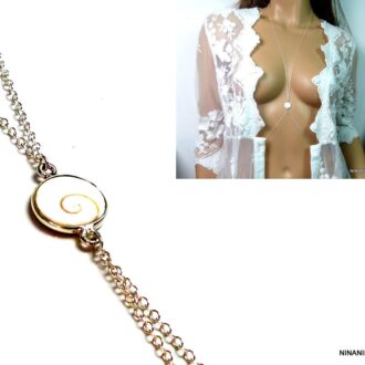 Envie de vous offrir une chaîne de corps tout en misant sur la discrétion et le raffinement? Cette Chaine de corps en Argent 925 avec son coquillage oeil de sainte lucie en cabochon monté sur une chaine en Argent 925 est précisément ce qu’il vous faut!