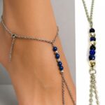 Chaine de corps Acier argent pierres bleues Lapis Lazuli