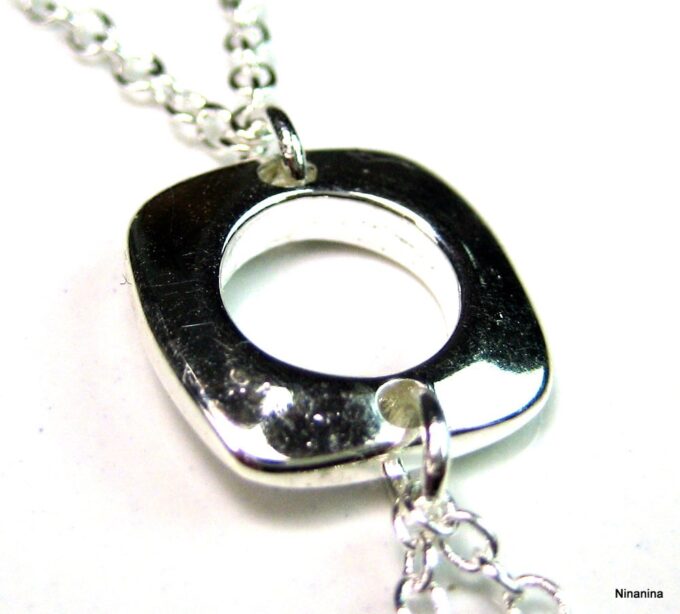 Chaine de corps plaqué argent composée d’un connecteur carré en plaqué argent monté sur fine chainette en plaqué argent. Dim du connecteur : 1 X 1 cm. Fermoir mousqueton. Longueur du collier : 60 cm. Longueur du collier : 60 cm. Longueur de la taille (fermoir compris) : 120 cm env. Taille unique. Livré dans sa pochette d’organza. Bijou 100% fait-main. Poids : 7,2 g