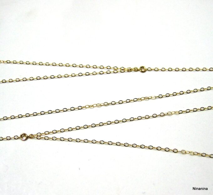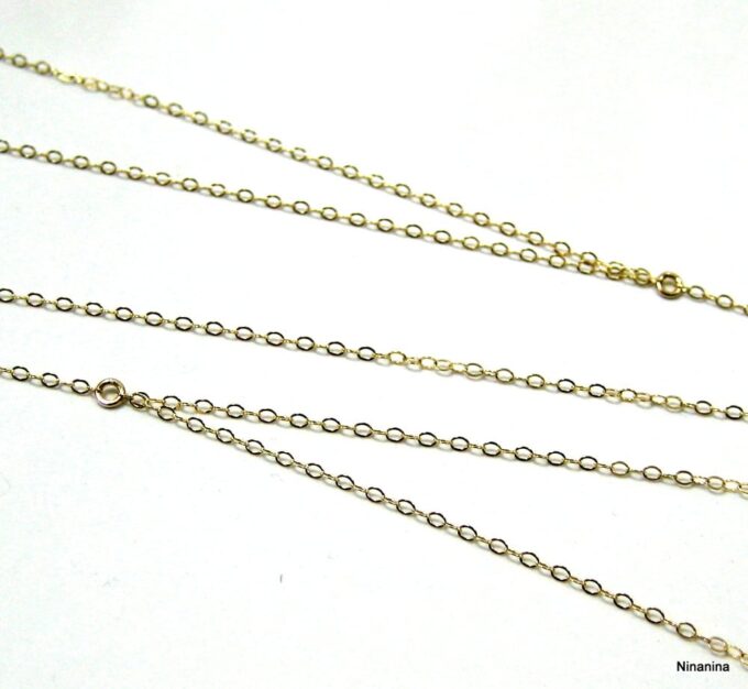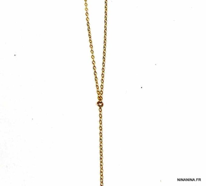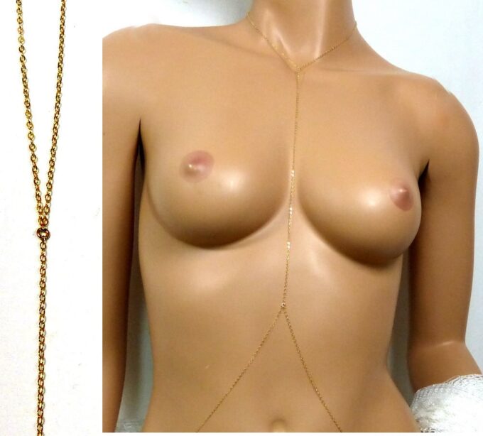 Chaine de corps plaqué or pour femme toute simple composée d’une chainette en plaqué or 14 carats gold filled. Fermoirs mousqueton (collier et dos).