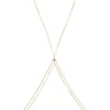 Un superbe motif central en oxyde de zirconium blanc d’où partent des fines chaines fantaisie en laiton plaqué or 18 carats qui remontant vers votre cou et redescendent sur votre taille. Ce bijou corporel ne demande qu’à mettre en valeur les courbes de votre corps, suscitant sensualité et volupté. Il se termine par un délicat fermoir mousqueton, facile d’utilisation et d’une chainette de réglage pour un ajustement parfait.