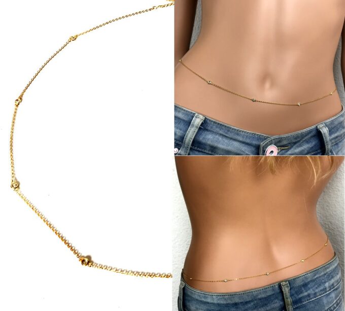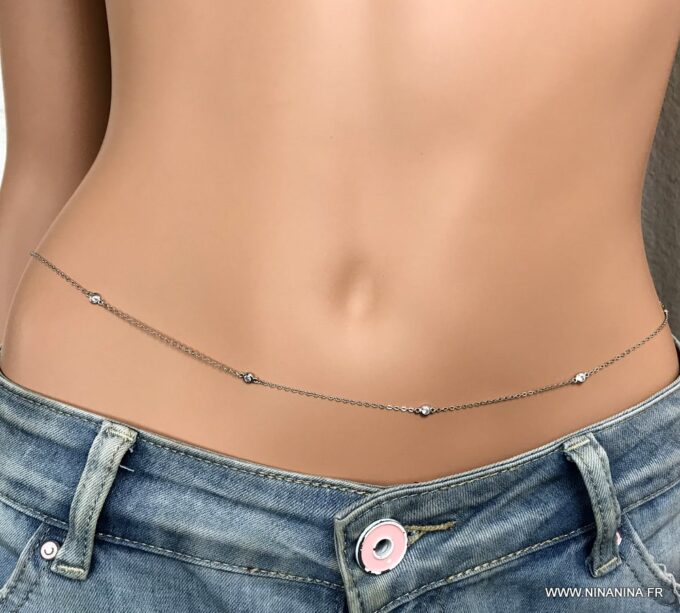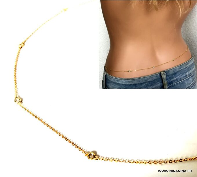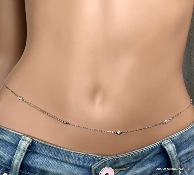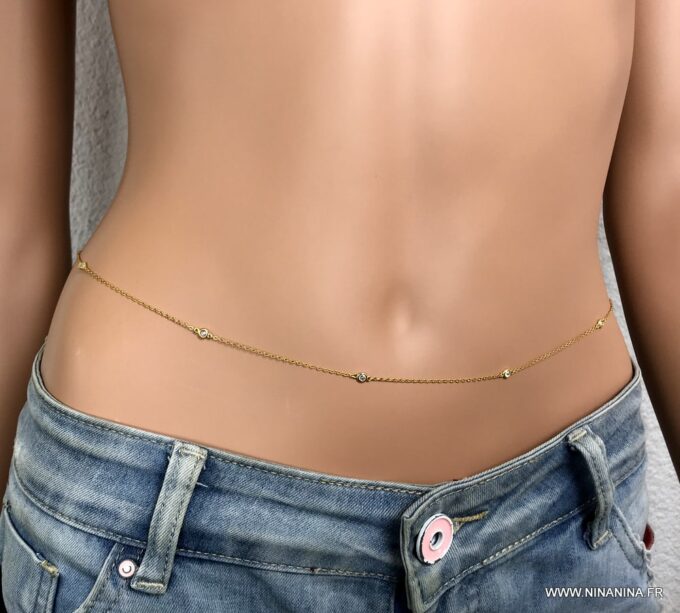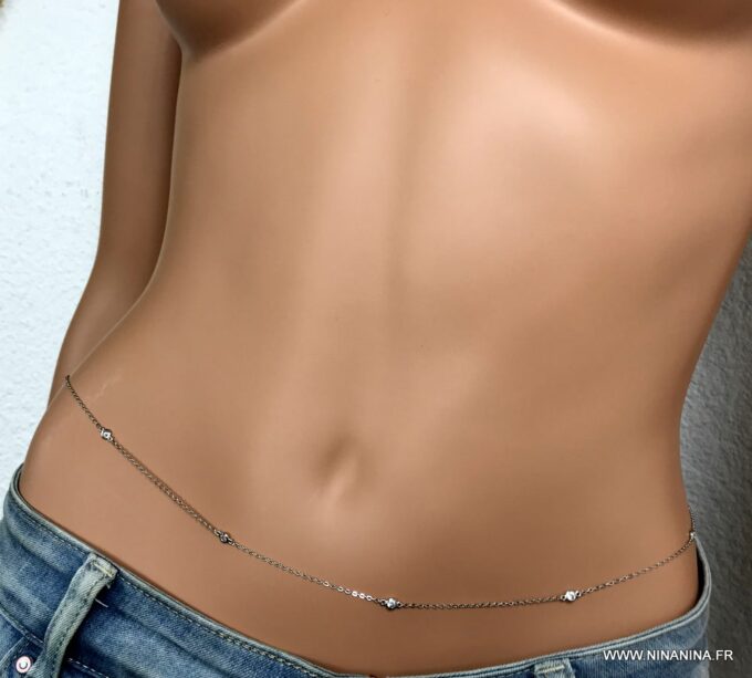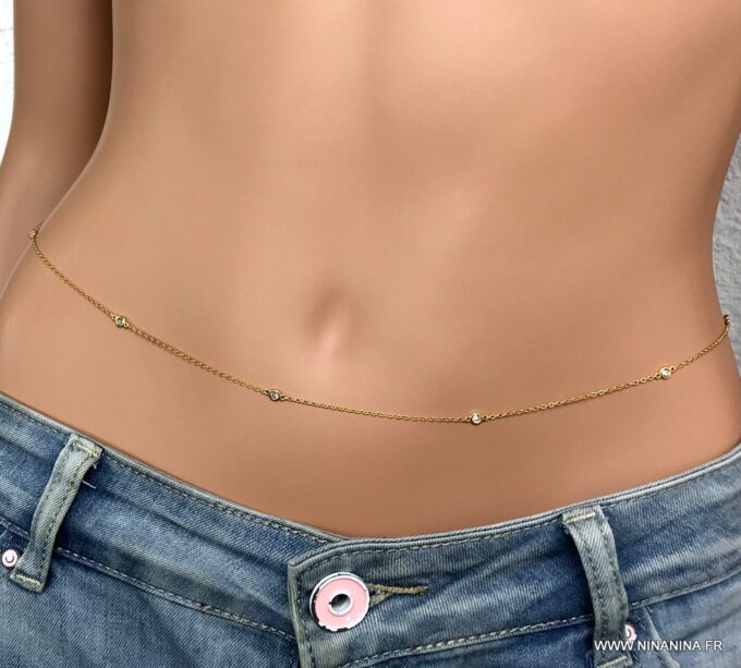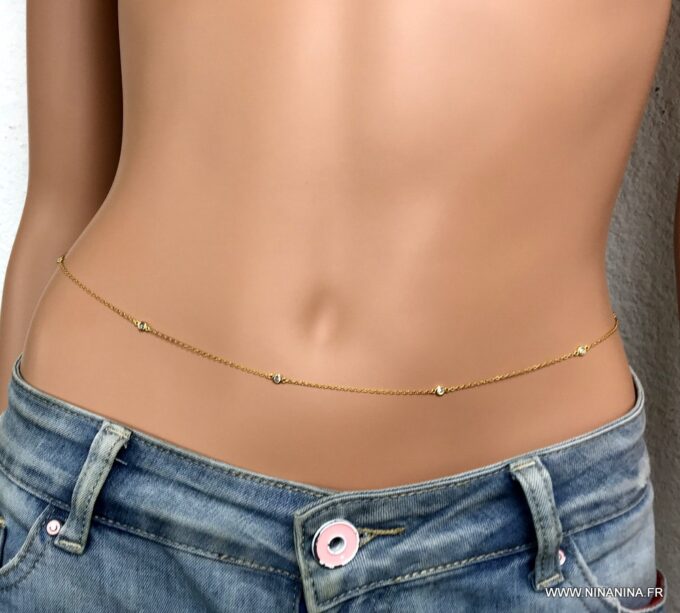 Une fine chaîne qui enlace votre taille soulignant le contour des hanches, avec juste ce qu’il faut de fantaisie pour allier subtilité et sensualité !