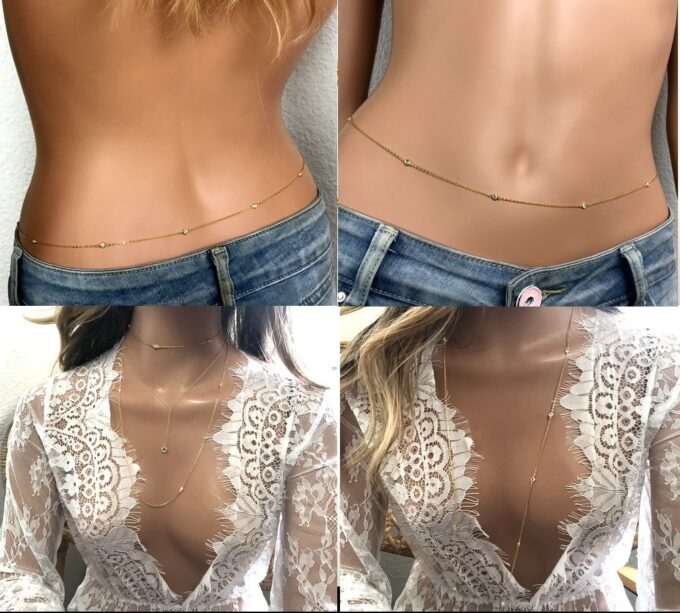 Cette chaîne de hanche, appelée également chaîne de taille ou chaîne de hanches est un bijou peu commun, qui se révèle d’une finesse et d’un raffinement exquis! Comme Rihanna, vous pouvez mettre la chaîne de taille avec un simple top et un jean. Elle a choisi un débardeur, mais vous êtes libre de dévoiler toute autre partie de votre corps pour un effet sexy garanti !