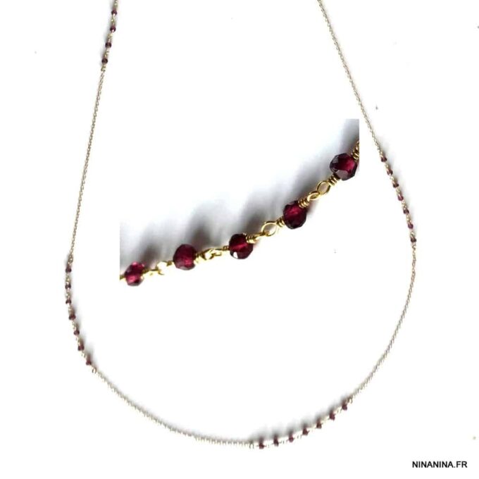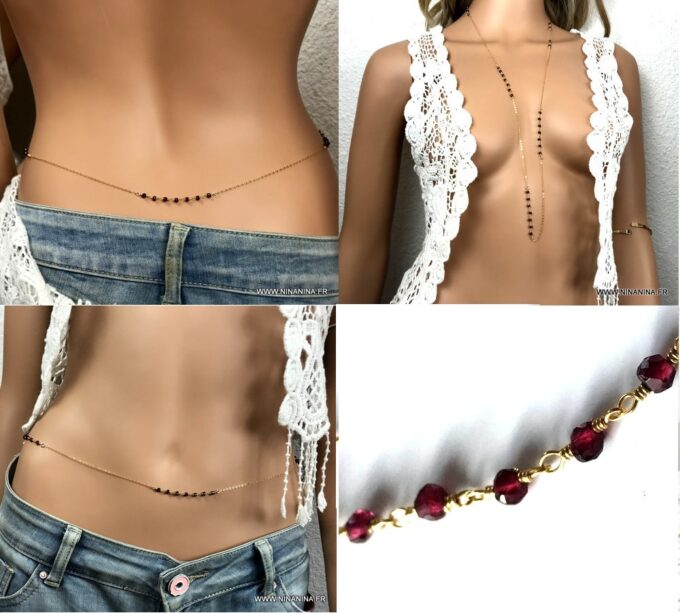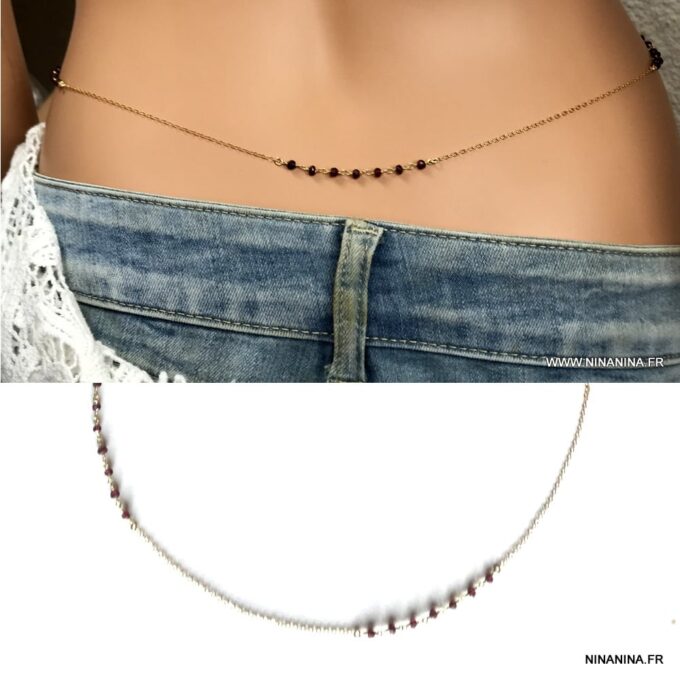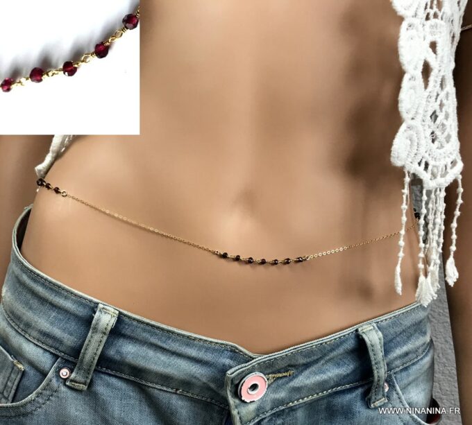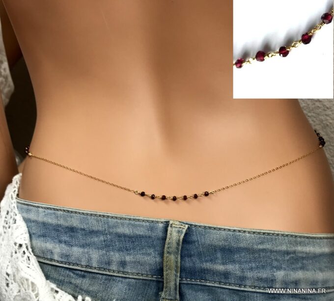 Faites une heureuse ou faites vous plaisir avec cette Chaine de hanches pierre semi précieuse grenat pour taille , constituée de petites pierres en grenat rouge naturel délicatement répartis sur une fine chaine en Plaqué Or 14 carats gold filled maille forçat. Cette Chaîne de ventre pierre de naissance janvier, aussi appelée chaine de hanches ou chaine de ventre, est terminée par un fermoir rond à ressort sûr et facile d’utilisation.
