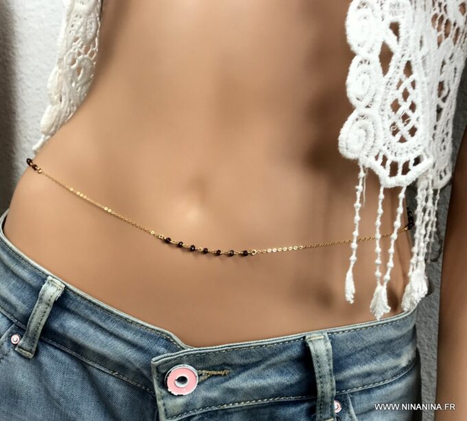 Portez cette jolie chaine de taille plaqué or en chaine de hanches, ou encore en chaine de dos ou en superposition avec d’autres chaines de taille Ninanina.