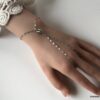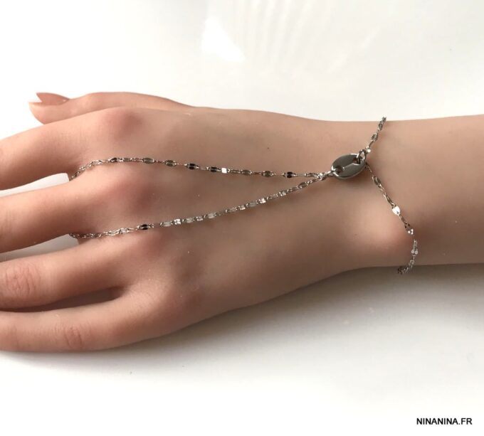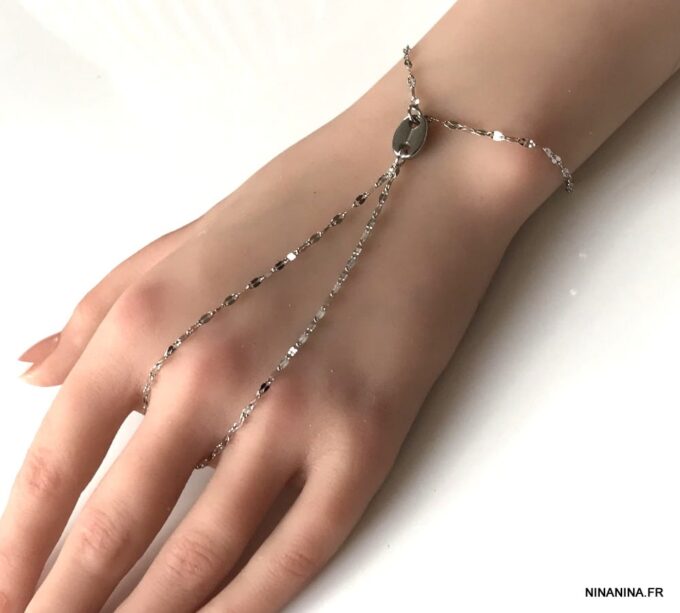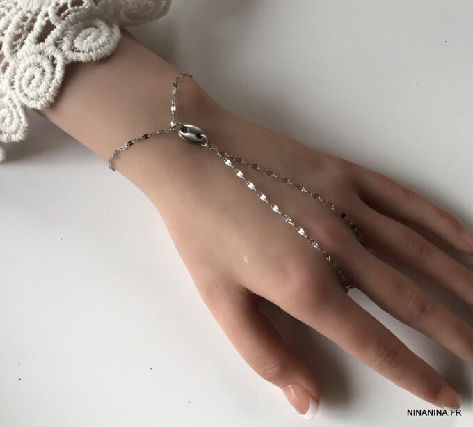 Cette jolie chaîne de main appelé également Bracelet bague est un bijou peu commun qui produira son effet au quotidien aussi bien que lors d’occasions plus habillées!