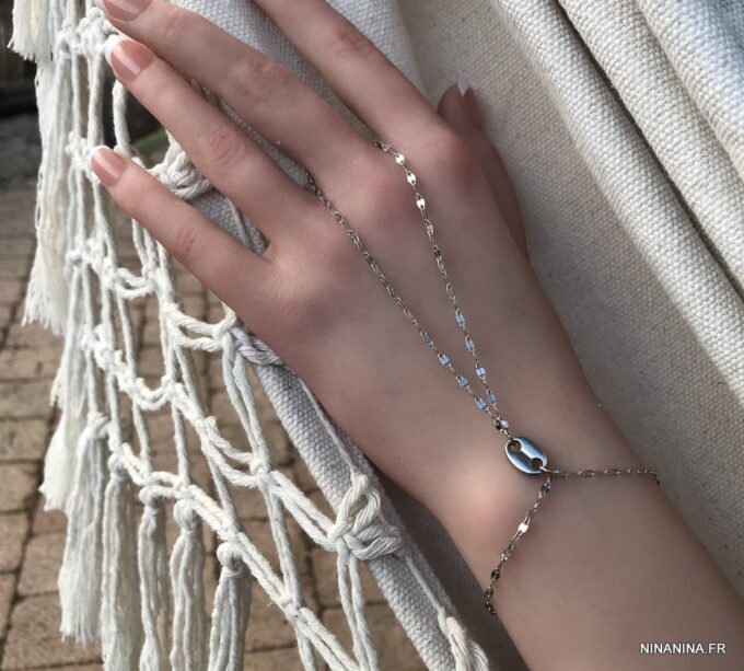 Portez ce joli Bijou de main tendance seul pour un look minimaliste ou mixé à d’autres Bracelets Ninanina.