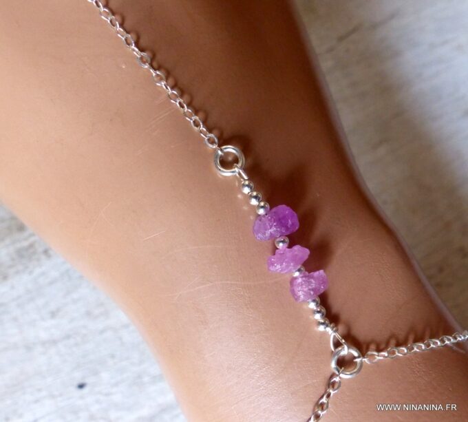 Ce Bracelet bague saphir de haute qualité est unique et fabriqué à la main, de façon artisanale dans notre atelier en France avec des saphirs roses bruts (non taillés). Il est terminé par un fermoir mousqueton en Argent 925, sûr et facile d’utilisation.