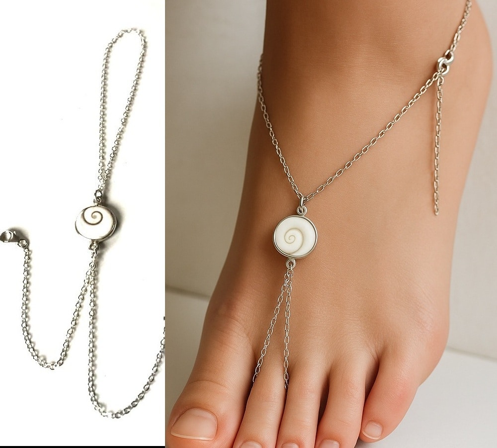 Chaine de Pied en Argent 925 et Coquillage Oeil de Sainte Lucie – Bijou Porte-Bonheur Artisanal