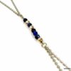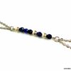 Sa chaînette délicate entoure gracieusement la cheville avant de se prolonger sur le dessus du pied, où une rangée de perles facettées de lapis-lazuli et de perles argentées capte la lumière avec éclat.