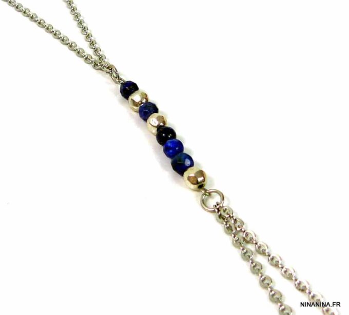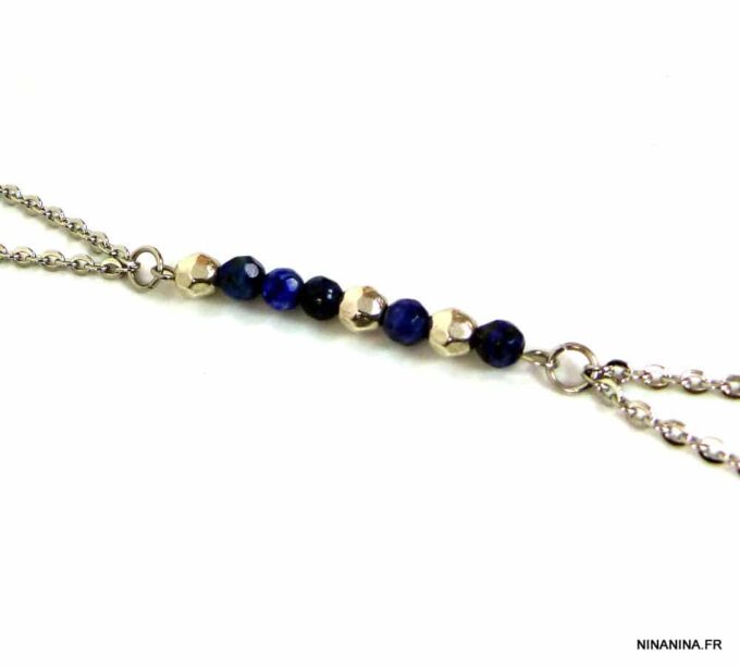 Ce magnifique bracelet de pied en acier inoxydable argenté met en valeur la beauté naturelle du lapis-lazuli, pierre bleue symbole de sérénité et d’élégance.