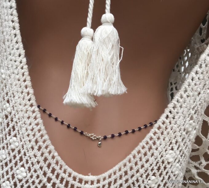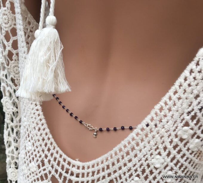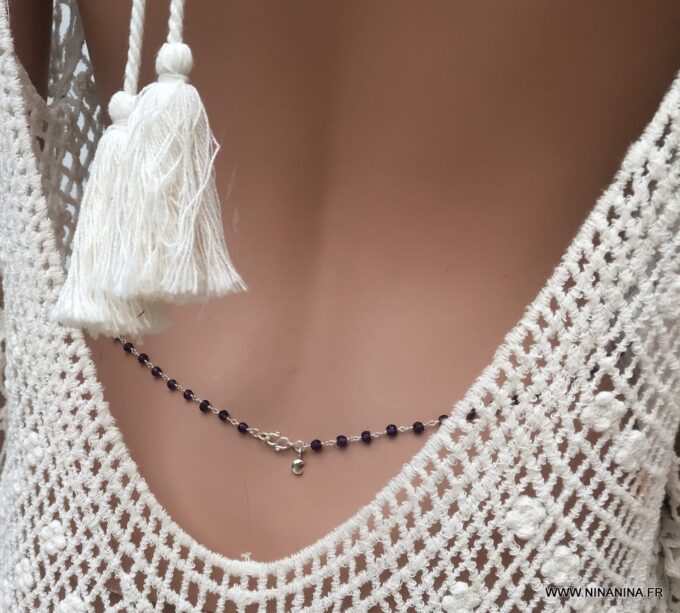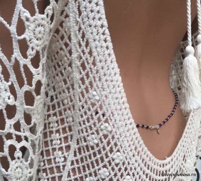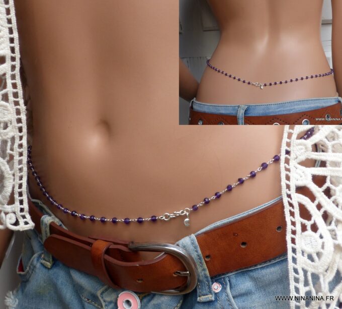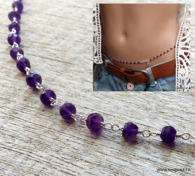 Vous souhaitez modifier ou ajouter une pièce? modifier la couleur ou la matière ? Cette chaine de taille avec Améthystes est faite sur mesure et comme la majorité des bijoux Ninanina, est personnalisable. Vous pouvez demander à modifier d’autres caractéristiques de ce bijou. Vous pouvez demander une longueur différente des 3 longueurs proposées si vous avez des hanches plus fines ou plus fortes que la norme. De la même façon, vous pouvez opter pour une chaine en plaqué or si vous préférez les bijoux dorés ou encore choisir une pierre fine ou semi précieuse différente de celles proposées; Il vous suffit de laisser un commentaire et nous élaborerons ensemble votre nouveau bijou personnalisé.